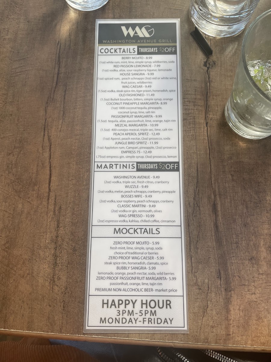For families, the kids’ menu promises satisfaction with favorites like Chicken Strips and Grilled Steelhead. From delicious meal options to exceptional service, every visit to WAG feels special. Patrons often rave about the inviting ambiance, echoing a modern vintage charm that enhances dining. Whether dining at sunset or celebrating a milestone, Washington Avenue Grill is a destination that beckons you to indulge and linger a little longer.